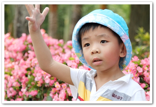 小毛戴的帽子是媽咪最近買的,帽子內側還是大花圖案哩!