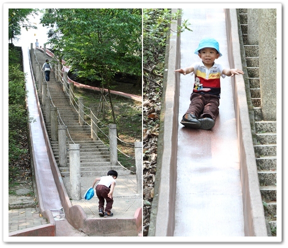 (小叮嚀:溜滑梯速度挺快,要注意安全!拿紙板當坐墊溜可以增加速度,很刺激喲!)