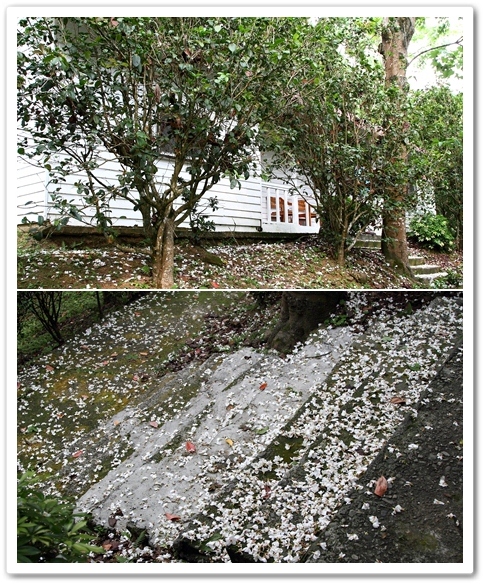 步道上、階梯上因此撒滿許多油桐花,好浪漫啊!
