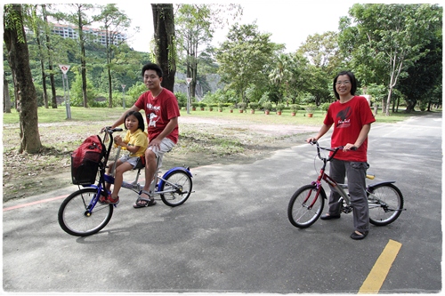 可惜飯店沒有比較小台的兒童腳踏車,只好委屈她讓爸比載囉!