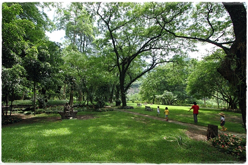 花園裡高大的樹木遮蔽了夏天的艷陽,散步其中感覺很不錯! (可惜蚊子超多)