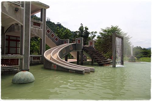 寶貝們只能在溜滑梯上玩水 (溜滑梯倒是不怎麼滑....)