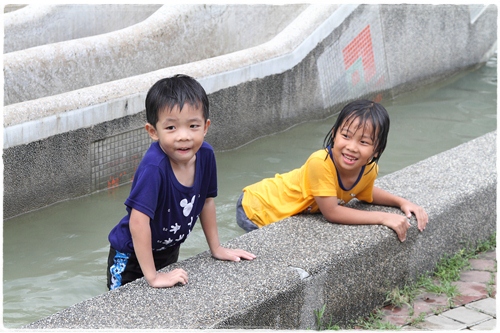 當寶貝們迫不及待要下水玩時,先下水去試探的志明說:地很滑,沒辦法玩!